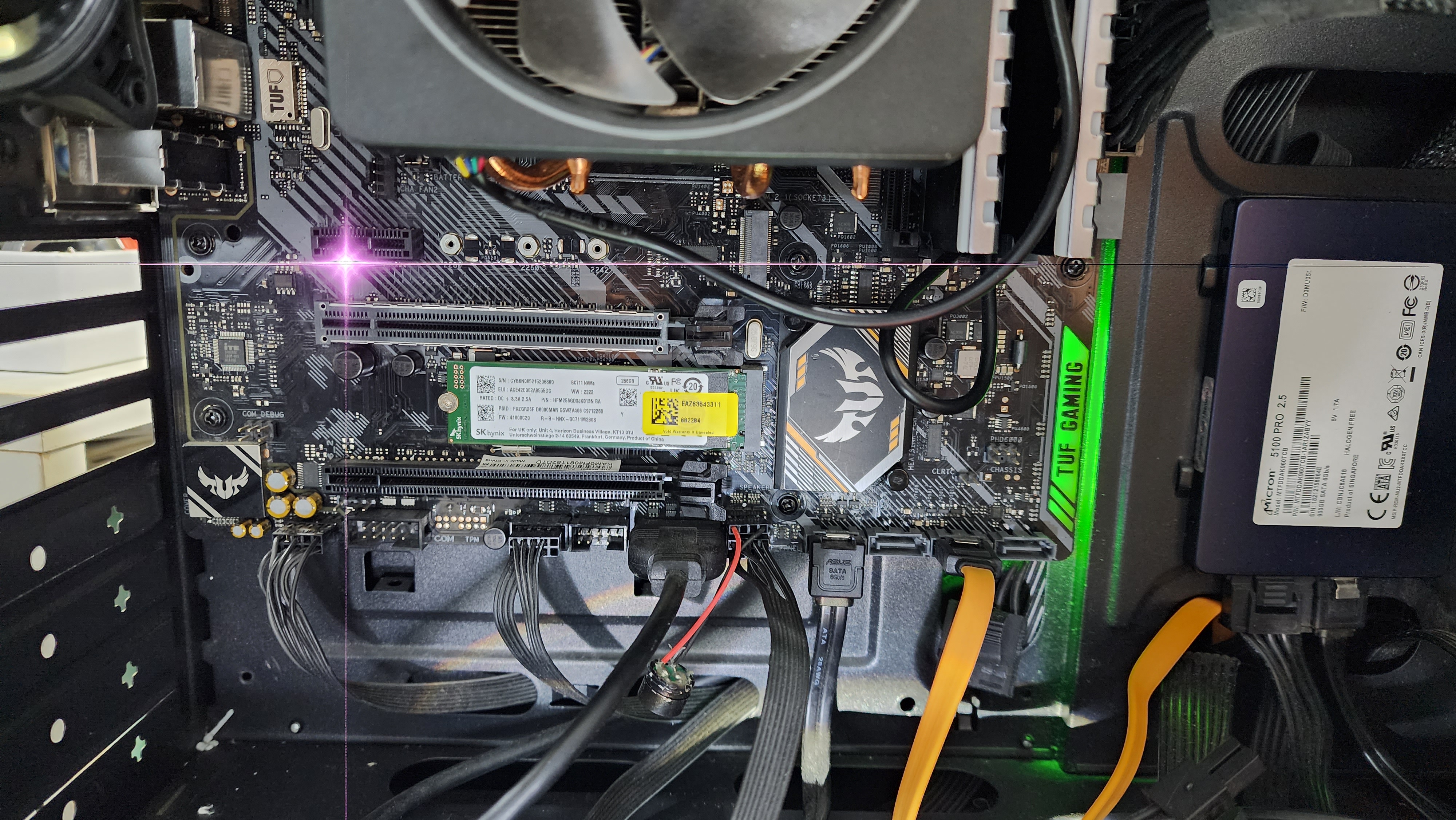 비디오카드를 들어내야 SSD 설치가 가능하다.